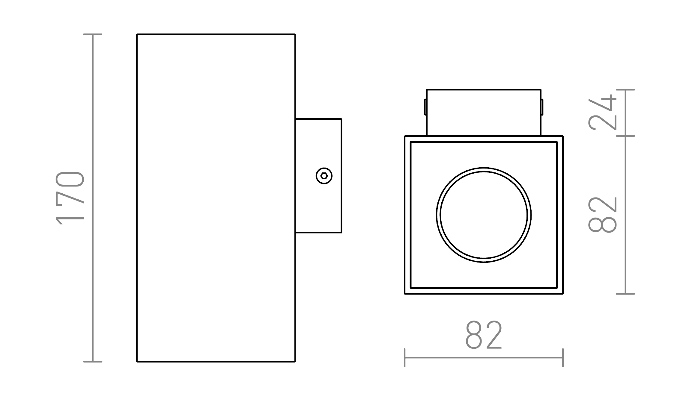 Falra szerelhető szögletes fém lámpatest, UP/DOWN megvilágítással, két GU10 foglalatú reflektor izzóhoz.