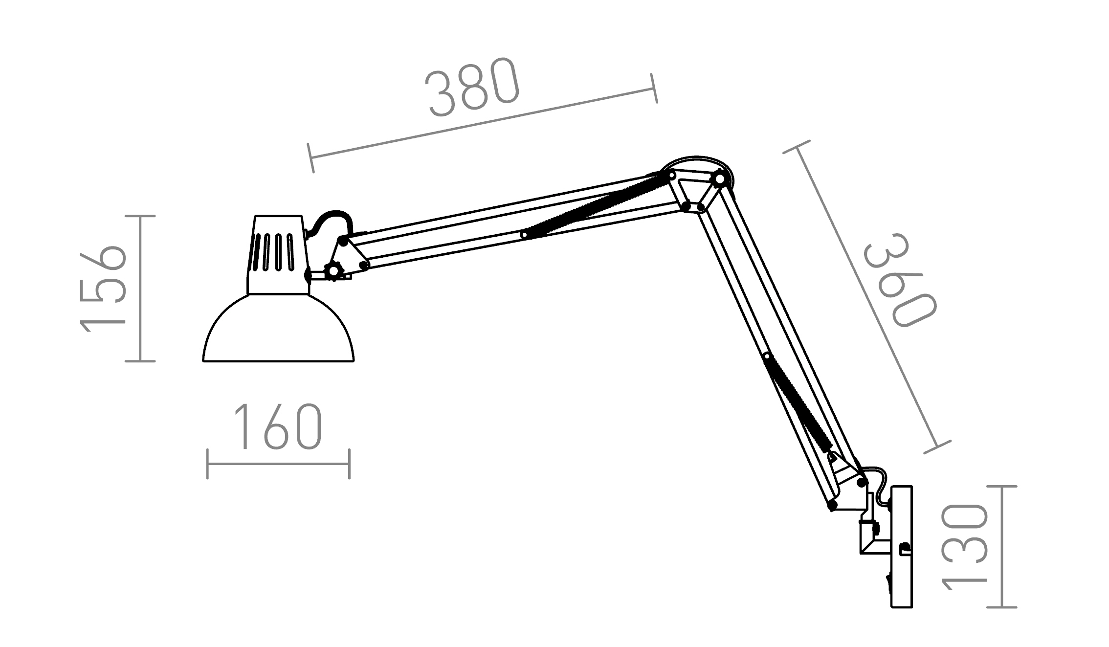 Fali állítható dolgozó lámpa kapcsolóval az alapon.