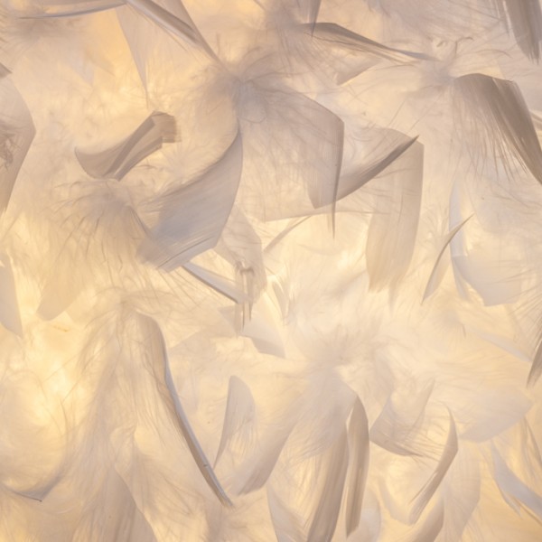 Függő lámpabúra valódi tollakból E27 foglalatra. Megfelelő kiegészítők: HEX, ELISA, ENZO, ETRE, KOMBIX, LISA.