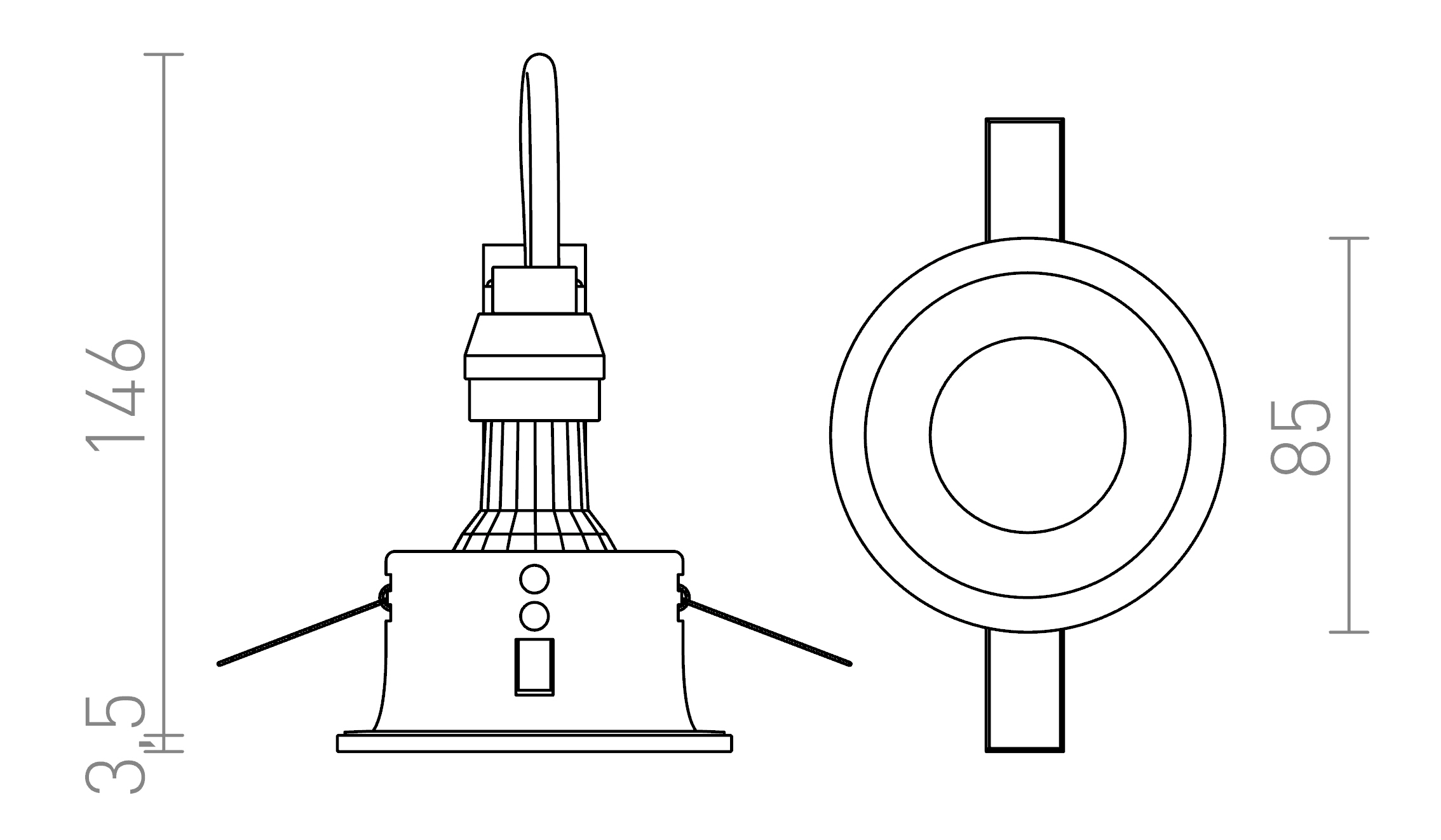 Süllyesztett kör alakú lámpatest gipszkarton mennyezetekbe, fürdőszobákba alkalmas, GU10 foglalatú izzókhoz.