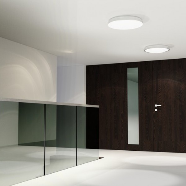 Könnyű, mennyezeti lámpatest műanyagból fém alapon két kör alakú fénycsőhöz: 55W + 22W.