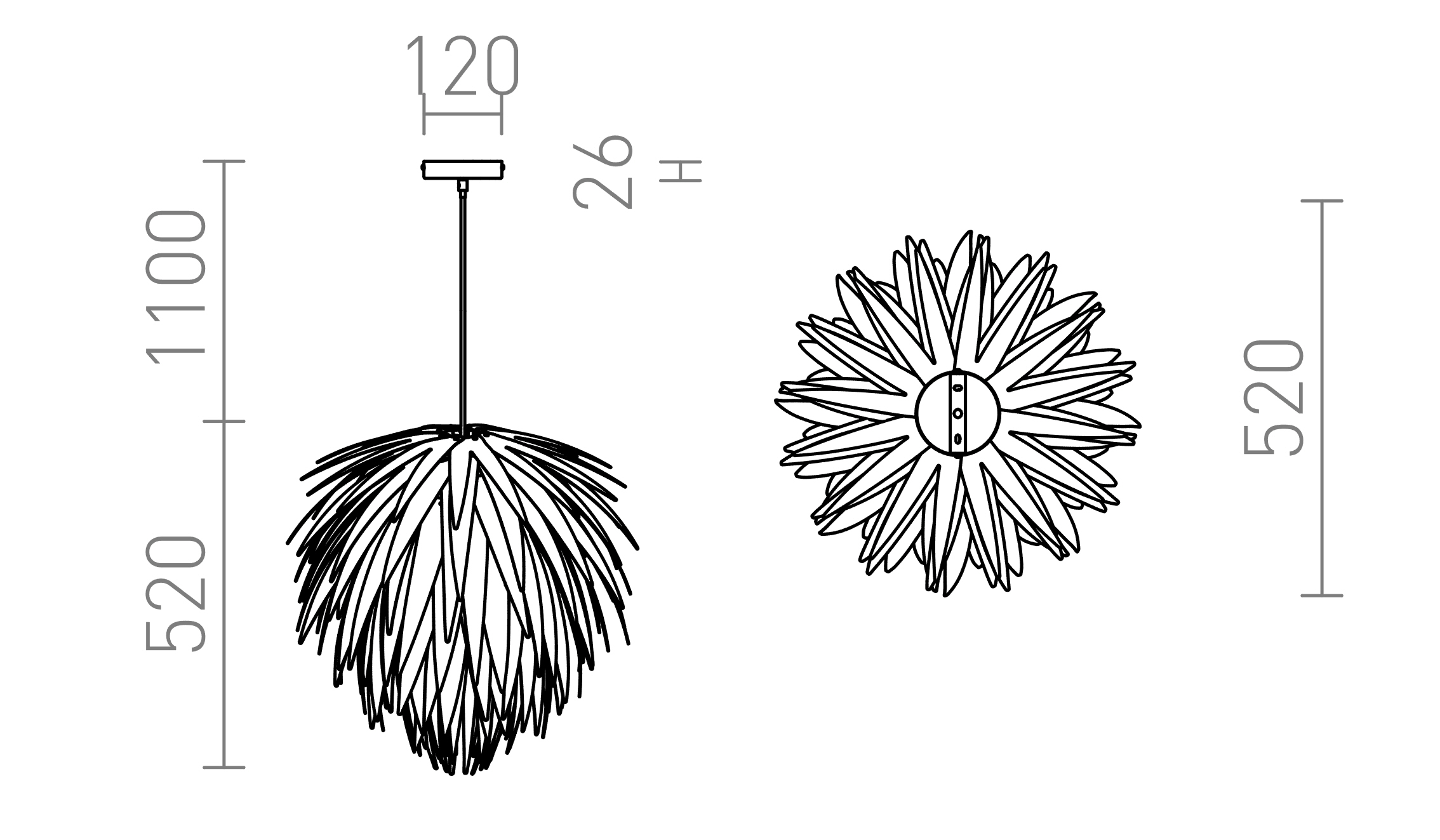 Dekoratív függő lámpatest műanyag szalagokból. Kézbesítés szétszerelve, szükséges összeszerelni.