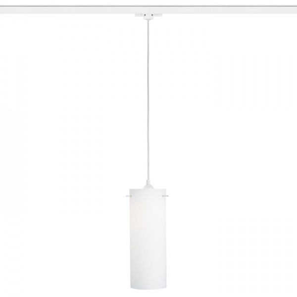 Függő lámpatest tej üvegbúrával és három áramkörös sínre való adapterrel.