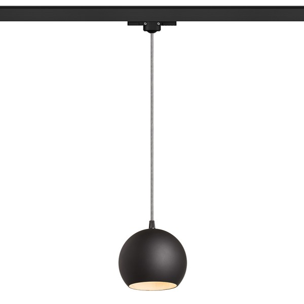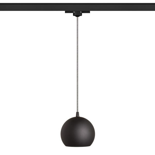 Függő lámpatest üvegbúrával és három áramkörű sínre való adapterrel, két színben.