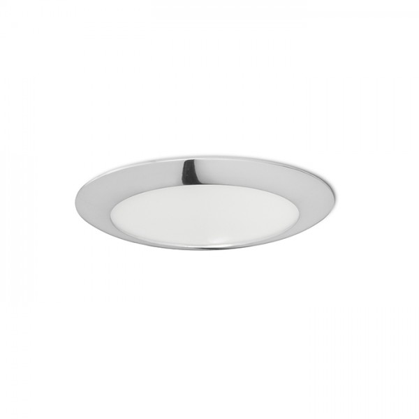 Kerek, süllyesztett LED lámpatest gipszkarton mennyezetekhez, lekerekített kerettel és alacsony süllyesztési mélységgel.