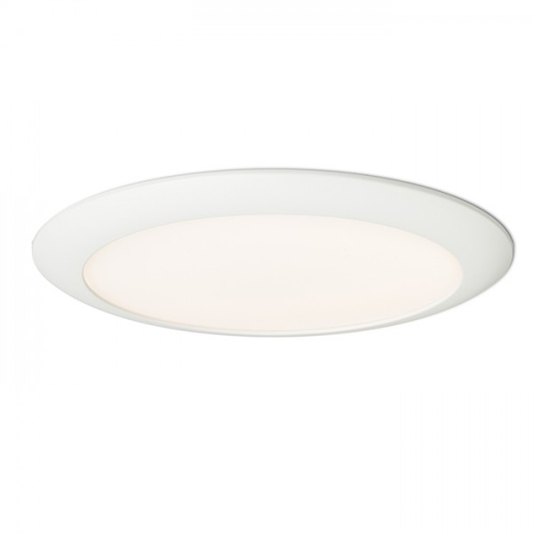 Kerek, süllyesztett LED lámpatest gipszkarton mennyezetekhez, lekerekített kerettel és alacsony süllyesztési mélységgel.