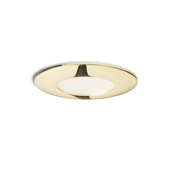 Kerek, süllyesztett LED lámpatest gipszkarton mennyezetekhez, lekerekített kerettel és alacsony süllyesztési mélységgel.