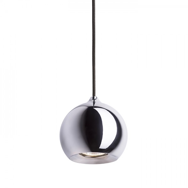 Függő lámpatest króm vagy réz búrával és mennyezeti alappal. A króm változat fekete textil kábellel van szállítva. A réz verzió piros textil kábellel.