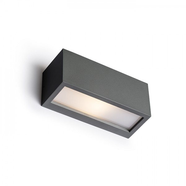 Téglalap alakú, falra szerelhető kültéri lámpatest UP/DOWN megvilágítással E27 energiatakarékos forráshoz.