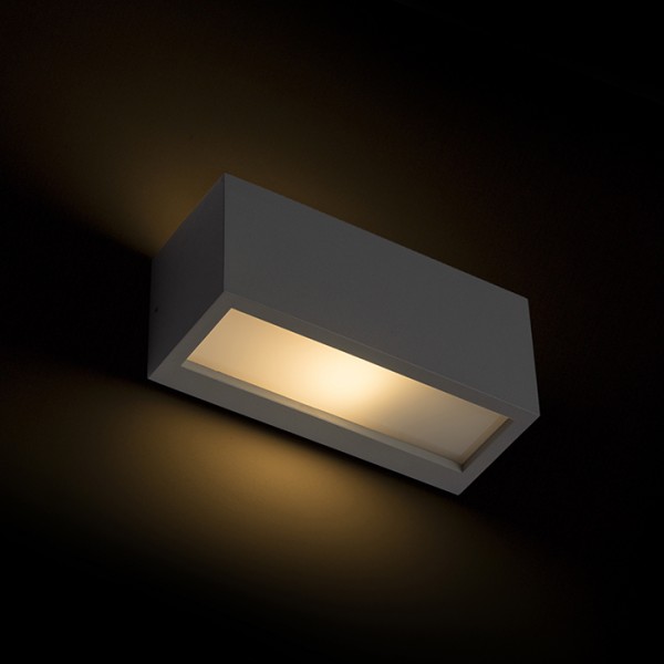 Téglalap alakú, falra szerelhető kültéri lámpatest UP/DOWN megvilágítással E27 energiatakarékos forráshoz.