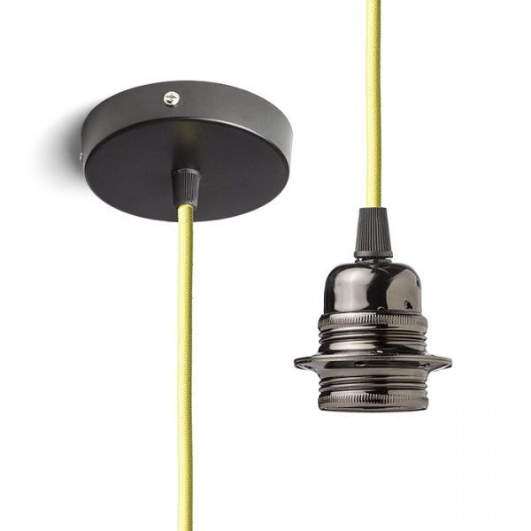 Függesztő készlet, kör alakú, fekete lakkozott alappal, textil kábellel, valamint egy fém E27 foglalattal. Alkalmas önálló használatra, vagy lámpatestek függesztésére. Megfelelő lámpabúrák: ARISTA, DELI, JAKARANDA, COCTAIL, DOUBLE 40/30, DOUBLE 55/30, ASPRO 40/30, KARO 55/15, KARO 80/20, RON 40/25, RON 55/30, RON 60/19, TEMPO 30/19, TEMPO 50/19.