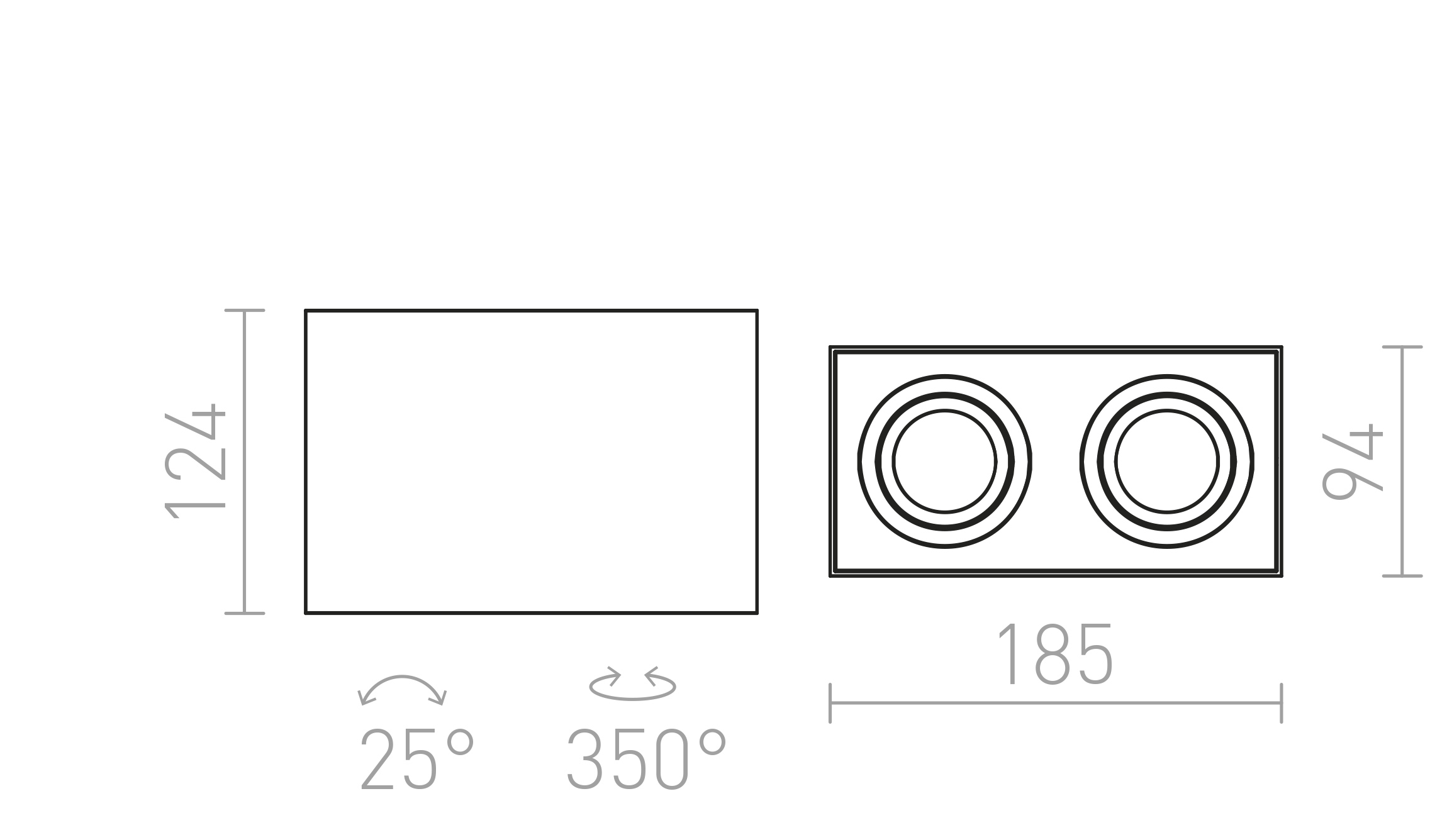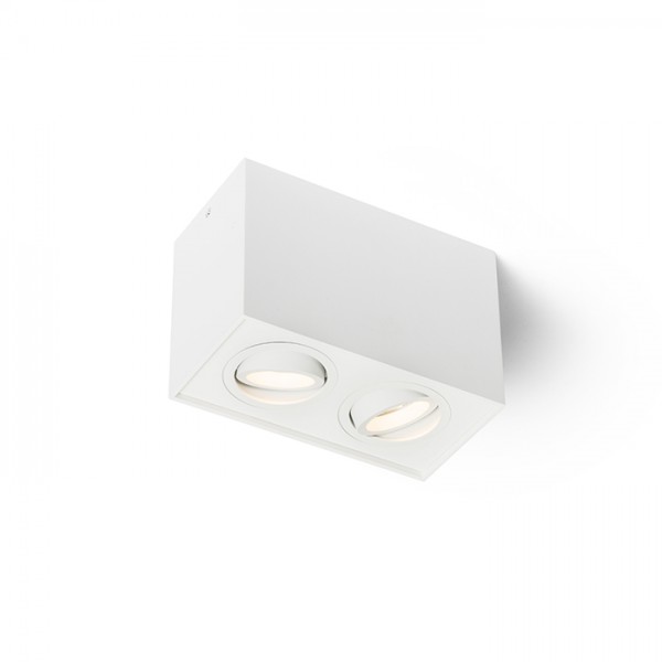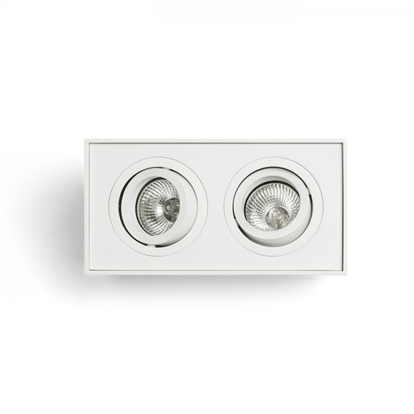 Téglalap alakú, felületre szerelhető mennyezeti lámpatest, forgatható, két GU10 foglalatú izzóhoz.