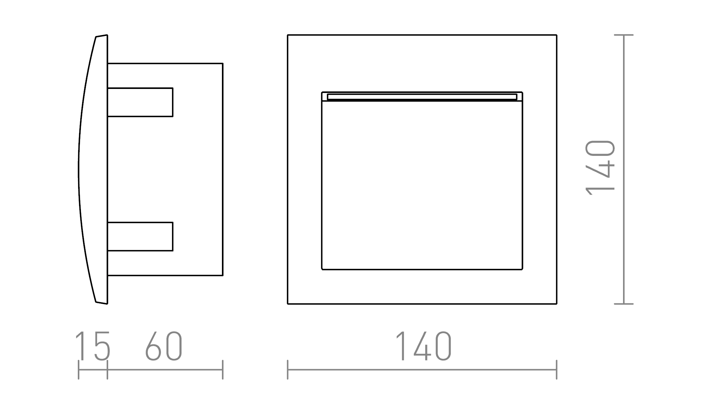 Süllyesztett négyszög alakú LED lámpatest a járdák, lépcsők vagy teraszok megvilágítására. A telepítés kizárólag lefelé világítással.