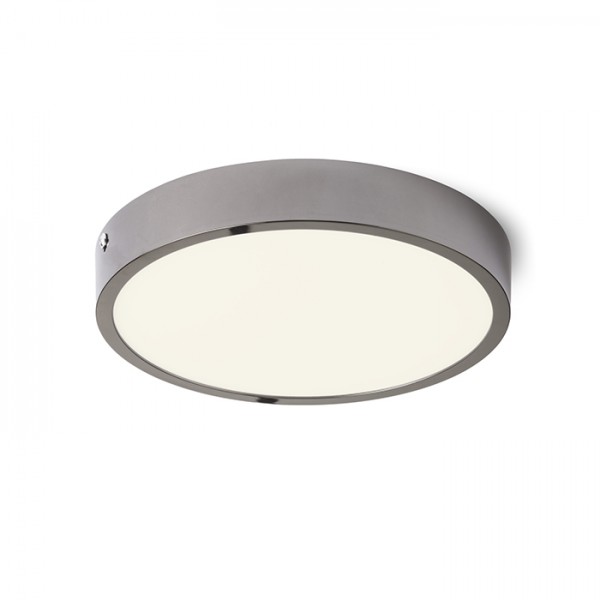 Nagyon vékony, kör alakú felületre szerelhető lámpatest nagy fényerejű LED-ekhez. A keretek króm, fekete króm, matt nikkel, fehér lakk és fa utánzat.