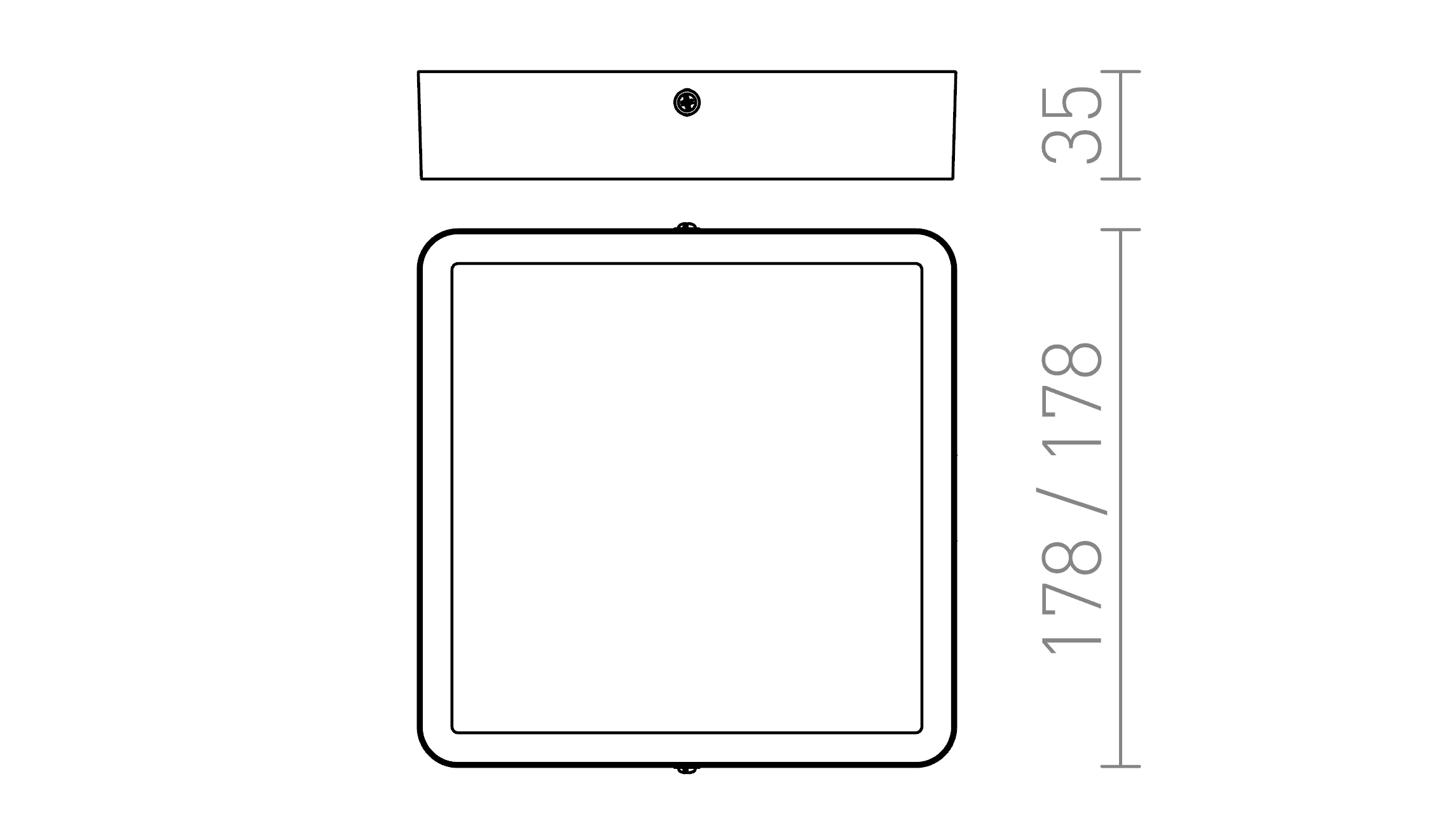 Nagyon vékony, felületre szerelhető négyzet alakú lámpatest, lekerekített sarkokkal, nagy fényerejű LED-ekhez. A keretek króm, fekete króm, matt nikkel, fehér lakk és fa utánzat.