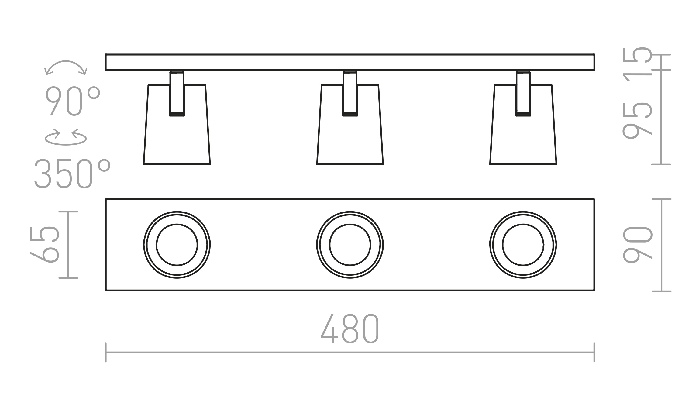 KENNY III felületre szerelhető szálcsiszolt alumínium/fekete 230V GU10 3x35W