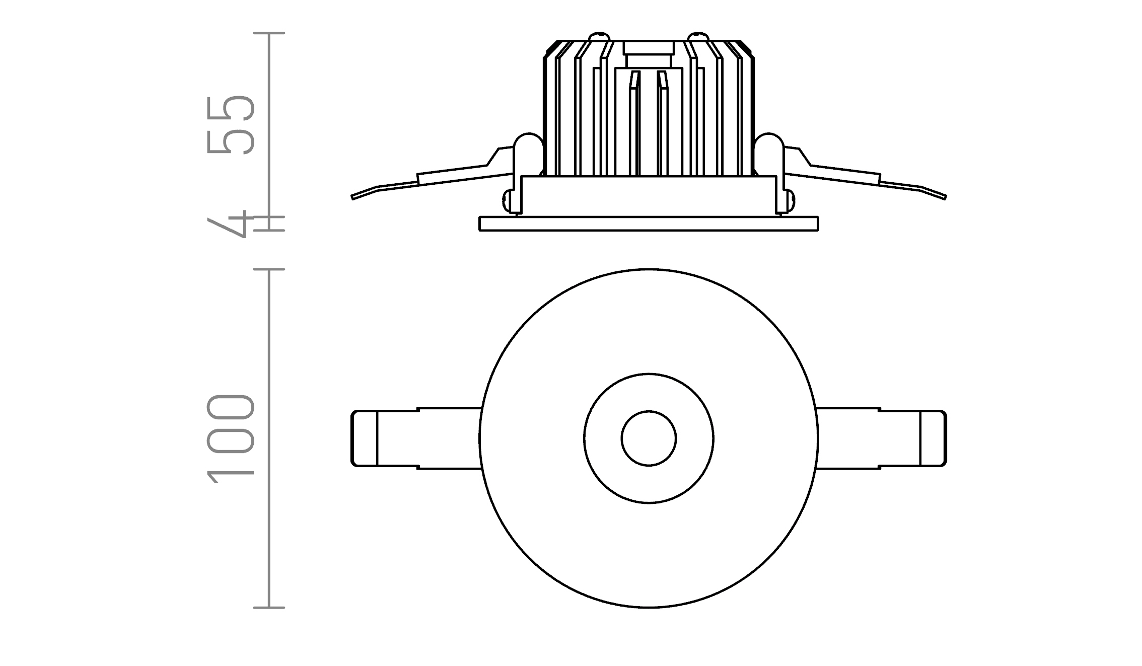 Kör alakú, süllyesztett LED lámpatest gipszkarton mennyezetekhez, süllyesztett reflektorral.