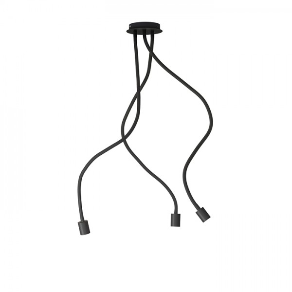 Mennyezeti rugalmas hármas lámpatest szilikoncsővel bevonva, hogy minden irányban rugalmasan állítható legyen. E27 dekoratív vagy reflektor izzóval történő használatra.