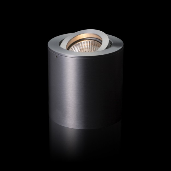 Henger alakú lámpatest polírozott alumíniumból a fényforrás forgatható.