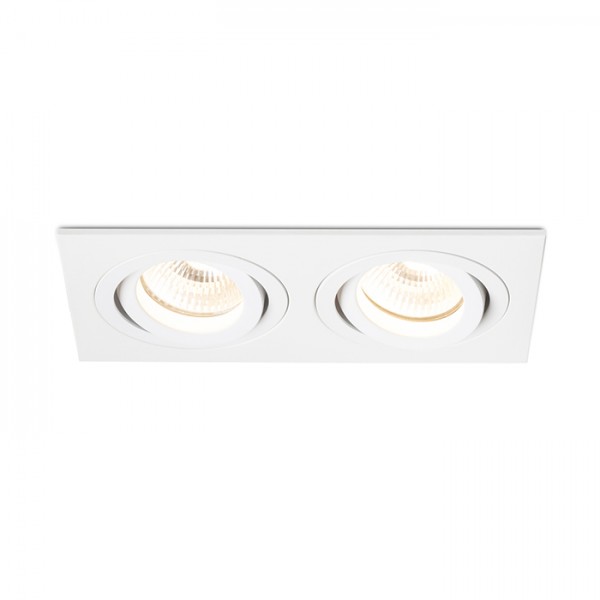 Téglalap alakú dupla süllyesztett lámpatest természetes alumínium kivitelben, két lakkozott változatban. Forgatható GU10 izzókhoz.