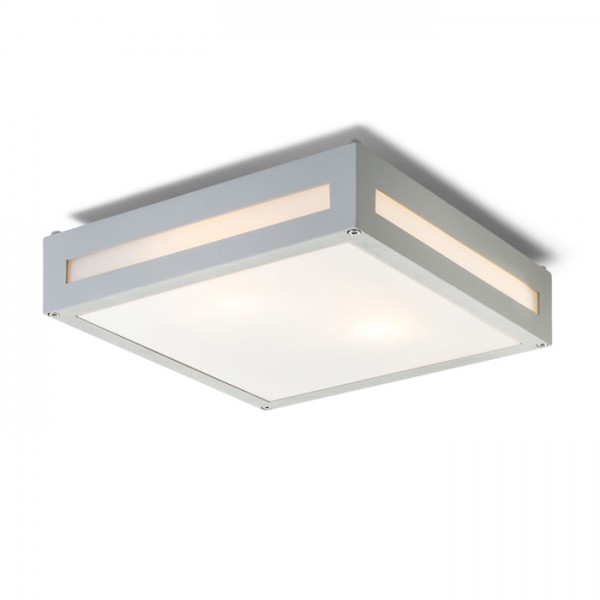 Kültéri szögletes alumínium lámpatest opál diffúzorral polikarbonátból a mennyezetre vagy falra való felszereléshez. A fényforrás maximális átmérője: 5,6 cm.