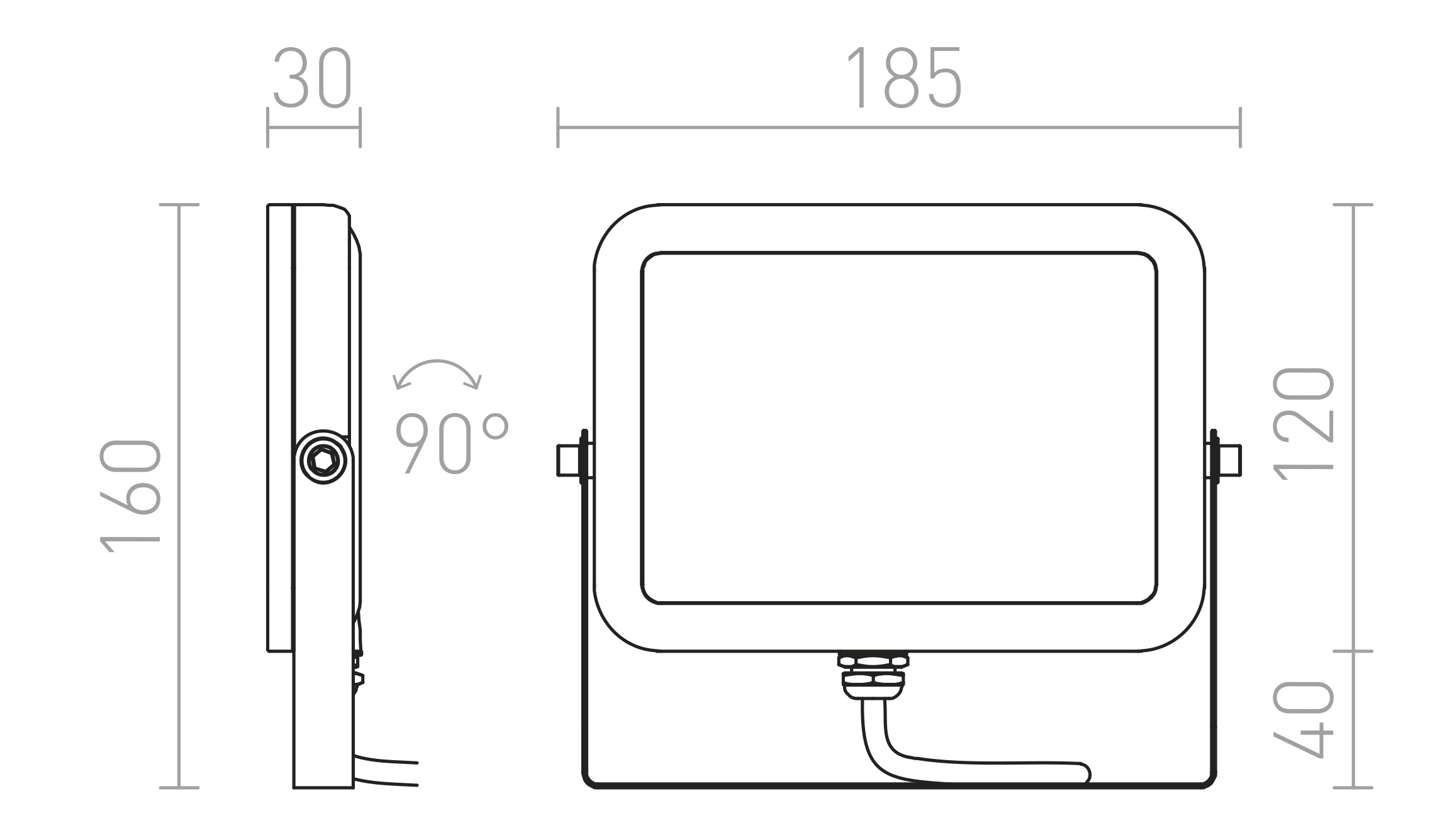 PONTA S reflektor fekete 230V LED 20W 120° IP65 3000K