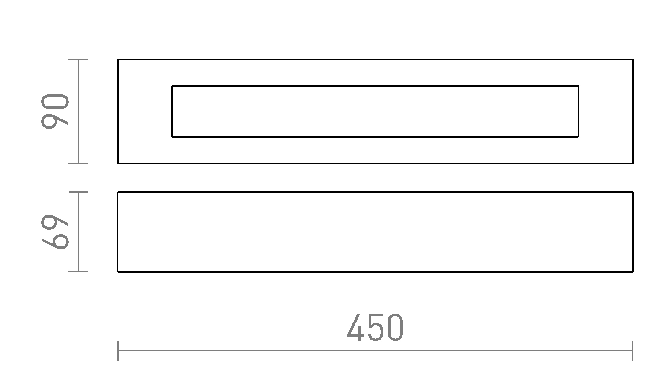 Fali gipsz lámpa, UP/DOWN megvilágítással. A lámpatest alsó része szatinált üveggel fedett. A lámpatest beltéri falfestékkel átfesthető.