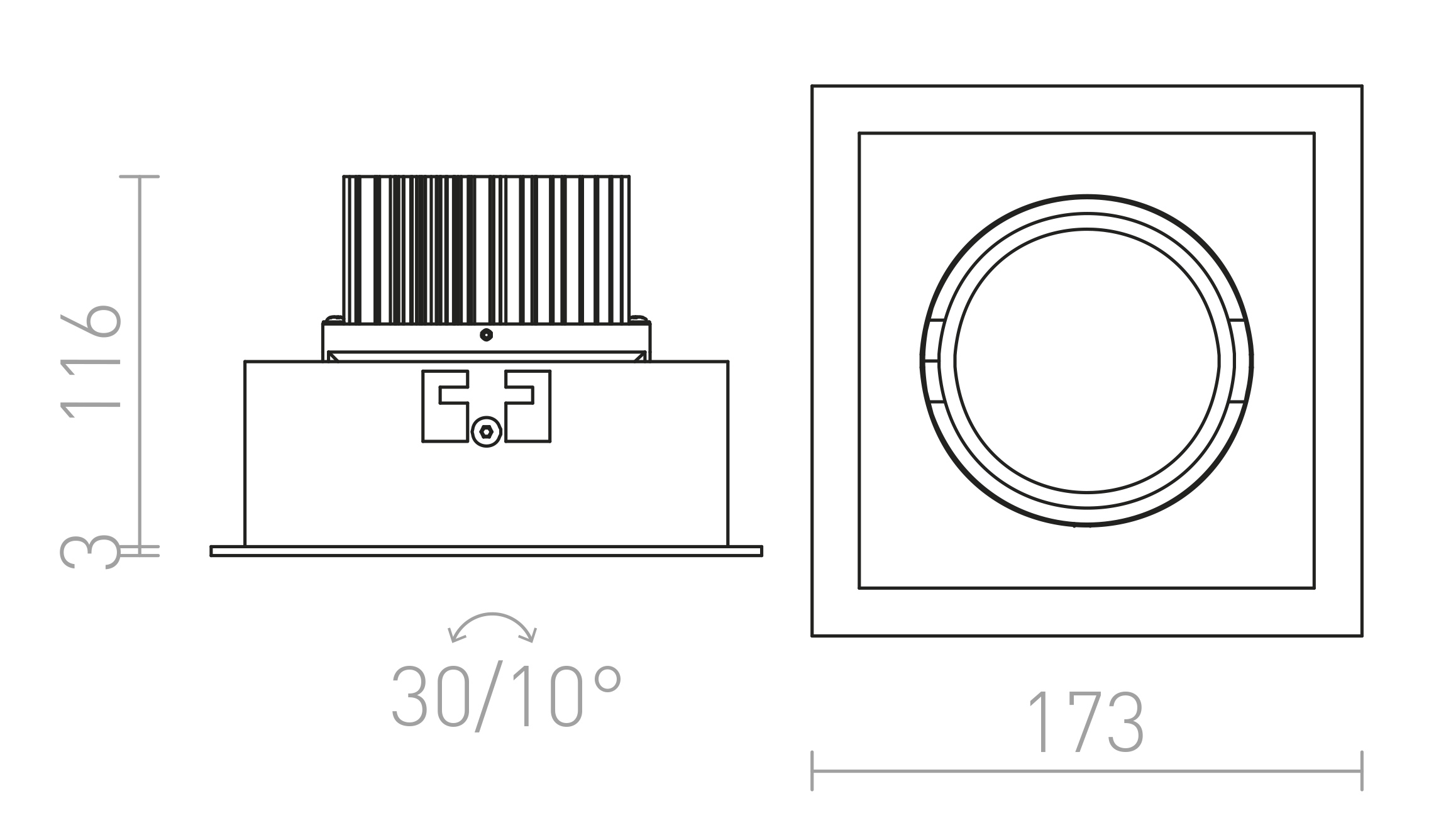 Nagy teljesítményű LED reflektor, forgatható. Gipszkarton mennyezetbe való használatra.