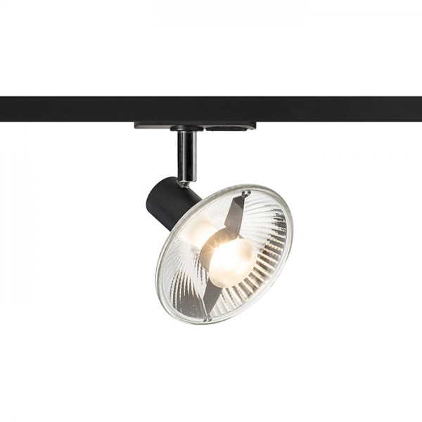 Lámpatest sínrendszerre. A lámpatest GU10 foglalattal van felszerelve. A fényforrás 111 mm vagy 51 mm átmérővel használható. A termék méretei fényforrás nélkül vannak megadva.