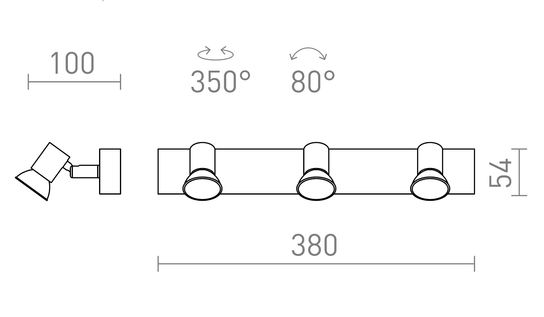 Egyszerű hármas fém spot lámpa, falba vagy mennyezetbe való könnyű elhelyezéssel. GU10 design reflektoros izzókhoz.