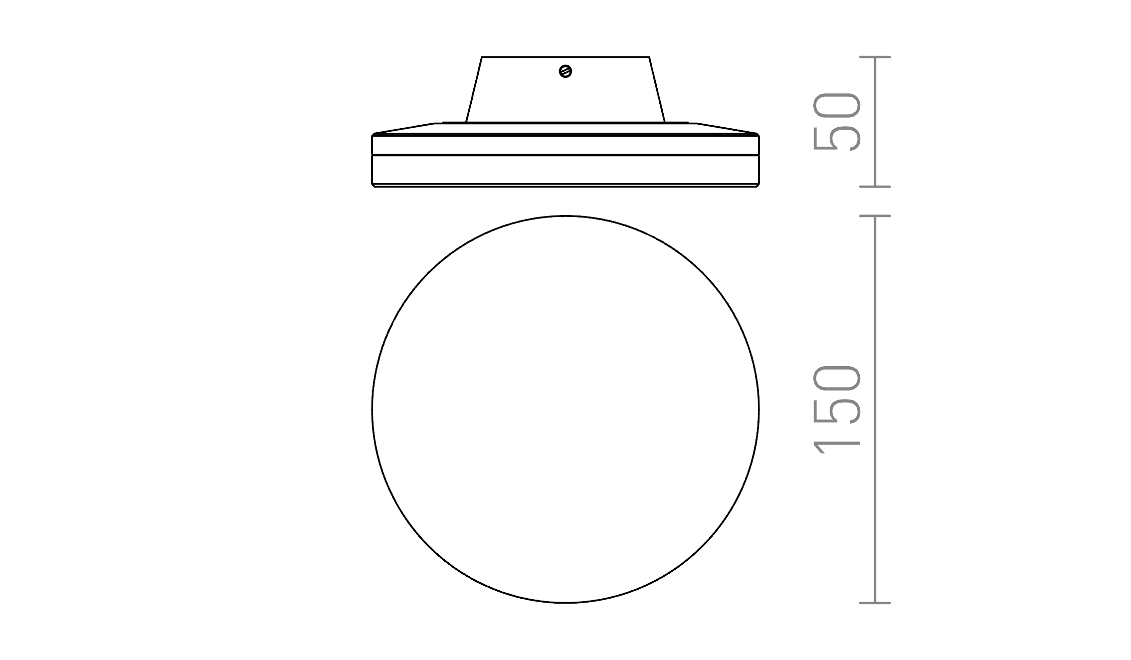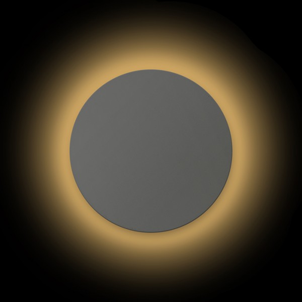 Falra szerelt kör alakú LED lámpatest, közvetett megvilágításhoz a falról visszavert fénnyel, beltéri és kültéri használatra.